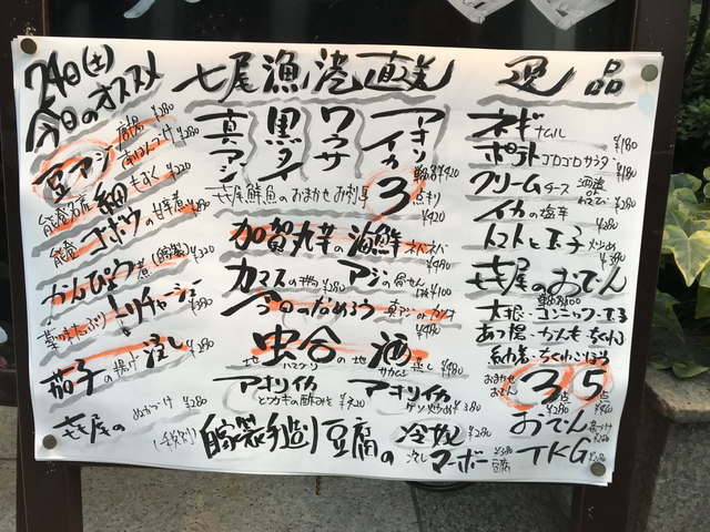 名前の通り、石川県の七尾漁港で揚がった魚を扱い、石川県を中心に全国の日本酒を飲めるお店です。