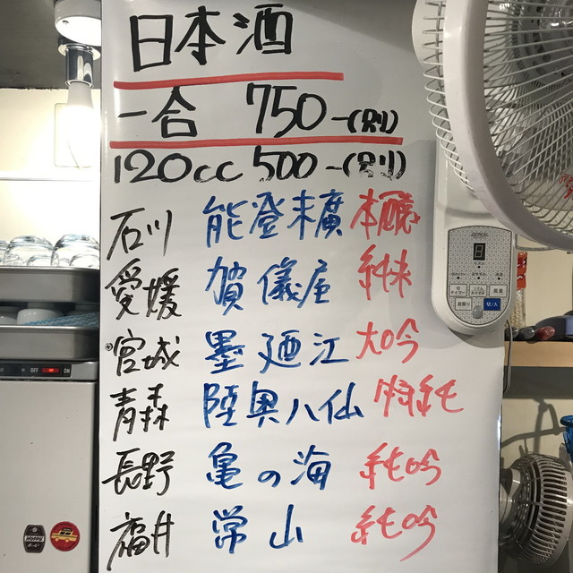 日本酒も常に5〜6銘柄用意し、120C Cで500円+税、1合で750円+税とわかりやすい料金体系です。