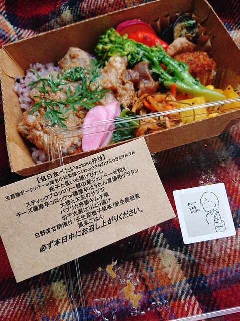 sotoko」さん。実店舗があるんですけど大津の駅前にあってなかなか行けないから。それにここのお弁当はすごく美味しいんだもん。