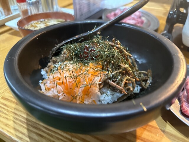 〆にチャンジャ、キムチ、ぷちホルモン丼にして食べました〜