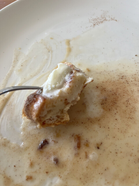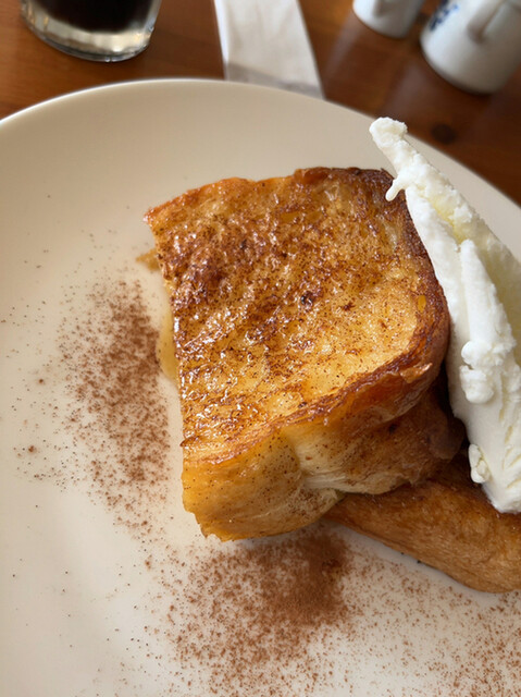 中まで卵液が染み込みすぎることなく、食パンのむちっとした食感も残しながら、バター、メープル、バニラアイス、シナモン、いずれの味もバランス良く加わっている。バターの風味が良かったな〜。