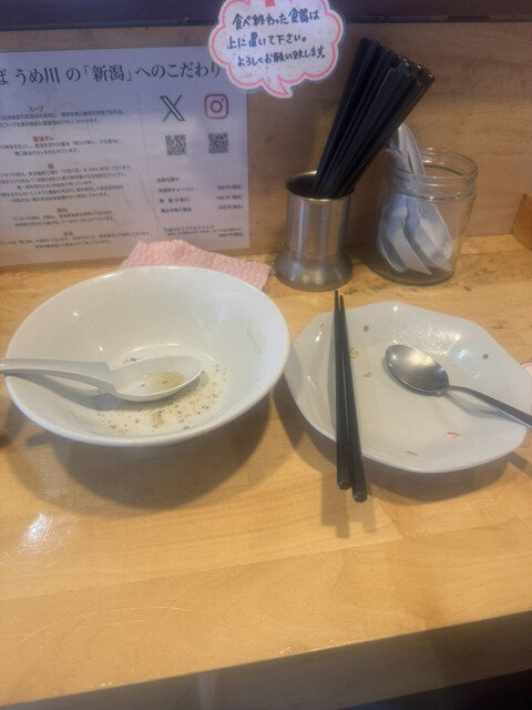ラーチャーハンセット。チャーハンもパラパラで至極の味。ラーメンはこれ以上美味い醤油ラーメンって作れないんだろうなと思う究極のシンプルな煮干し系醤油ラーメン。スープ飲みほしちゃあかんのはわかってるが、ここのラーメンはとまらない、気づいたら完食している。煮干しのえぐみが全くない、非常に上品なスープ。まさにこれはラーメンではなく和食。
