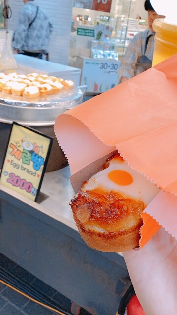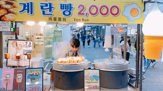 食事 ビビンバ13000W、たまごパン2000W、夜屋台の焼き鳥ハツ15000W