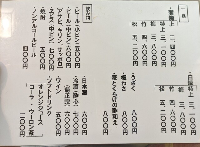 白焼きは、定食と単品が同じ値段なのが