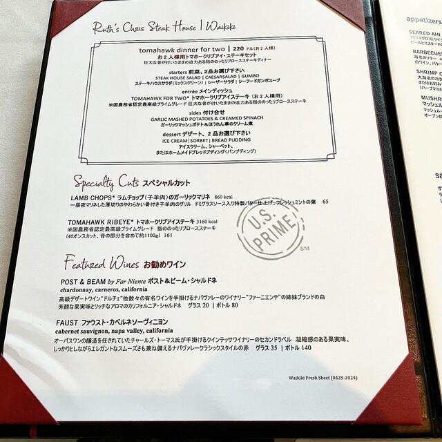 「Ruth's Chris Steak House Waikiki」さんへ!
