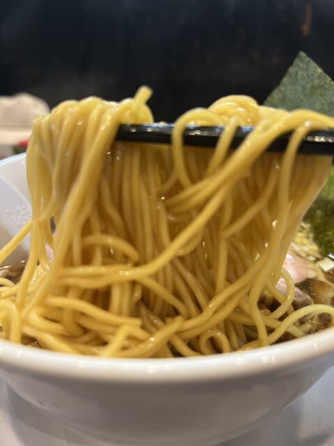 およそ7〜8分でしょうか、まずは背脂ラーメンが着丼。雲呑も乗ったそのビジュアルはボリュームがあります。チャーシューは適度な厚みと肉感があり上等なローストビーフに汁感が強めな感じで美味い。麺は毎度の太麺でスープによく絡み小麦感もしっかり。ちょっと足りないと思ってしまうくらいあっという間に食べてしまいました。スープは背脂が浮いていてスープの味も殺さず脂の味もしっかりしていますが、なぜか優しめ。飲もうと思えば最後まで飲めてしまします。雲呑はトロッと感やつるんとした食感はそれほどですがしっかりとしたサイズの餡がプリッとした食感。大きめで食べ応えもあります。