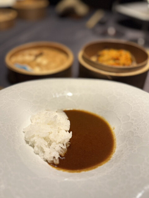 オスもメスも食べられる季節。多くのお料理に上海蟹が使われている!いつもの香辣鸡翅(赤唐辛子の山の中に鳥手羽が突き刺さってる)の中にも上海蟹!どれもこれも美味しい。でもやはり一番好きな上海蟹の食べ方は紹興酒漬けの酔っ払い蟹です。オス、メスとも旨いがやはり内子を抱えるメスは抱腹絶倒の旨さである。そして驚きはこの日の〆。なんとカレーライス。これも普通のものではなく、途中でセイロで蒸した上海蟹を投入する特製カレー。ほんのりココナッツミルクの香るカレーに上海蟹、更にここに特製辣油をかけて、まあ何とも豪華で唯一無二のカレーライスの出来上がり。旨いに決まってますね。旨みが深いのです。