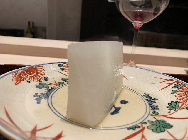 こちら、ホスピタリティとか、サービスとか全く無縁なお店ですが、どうしてもやめられない(笑)。料理のお味が絶対的に美味しいのです。たまに、あれ?って思うこともなくはないけど、それもかすかな差。ひょっとしてお弟子さんの仕事なのかな?とにかく大将の人を食ったような言動、ダメな人はダメだろうなぁ。私は意外にヤンチャな感じで好き(笑)。シャンパーニュ やワインをずらっと並べてどれにします?と。これいくらですか?って聞いても「いいじゃないですか〜」と教えてくれない(笑)。まあ、そう言うことが許せる人じゃないと「2度と来ねーよ!」ってことになるな(笑)。この魚、どこで獲れた魚ですか?「海!」