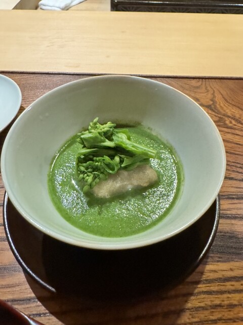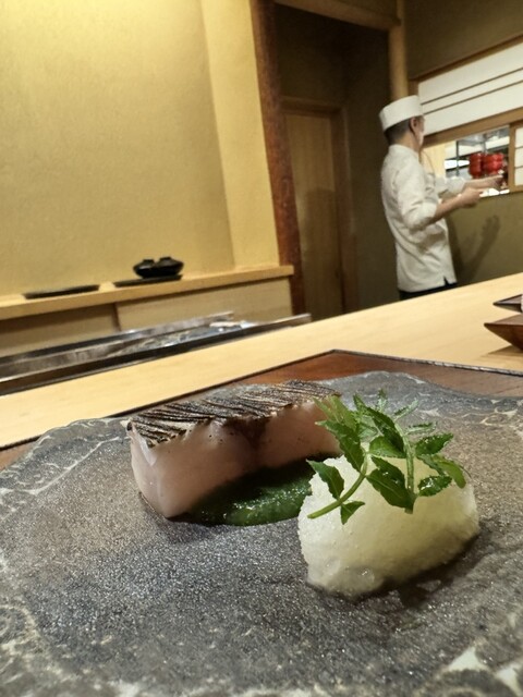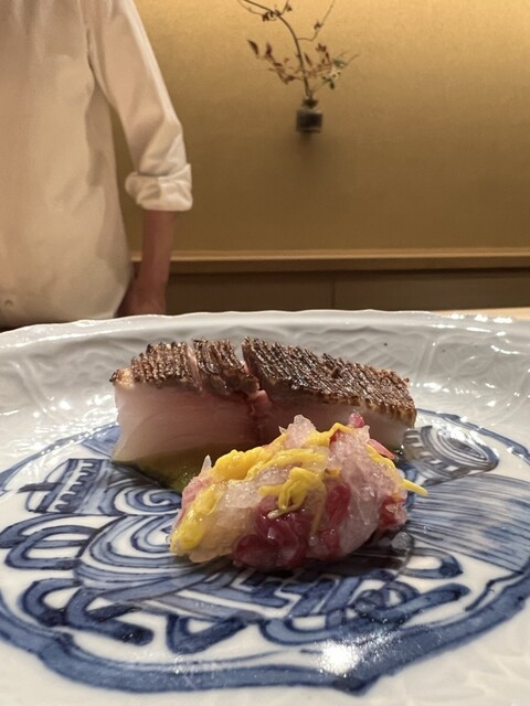いきなりミシュラン二つ星獲得の和食店。革命的と言うのは所謂和食の基本となる鰹節や昆布の出汁をほとんどとらないその料理手法から。素材の旨みを存分に味わう。そのため、ときには出汁がそれを邪魔することが多々あるという。そういうロジックで料理されている。毎回思うのだけど、コースの最後の方に少し出汁を使う料理を出される。これが非常にいいタイミングで出汁の旨さを痛感できるのである。とても上手い手法だと思う。