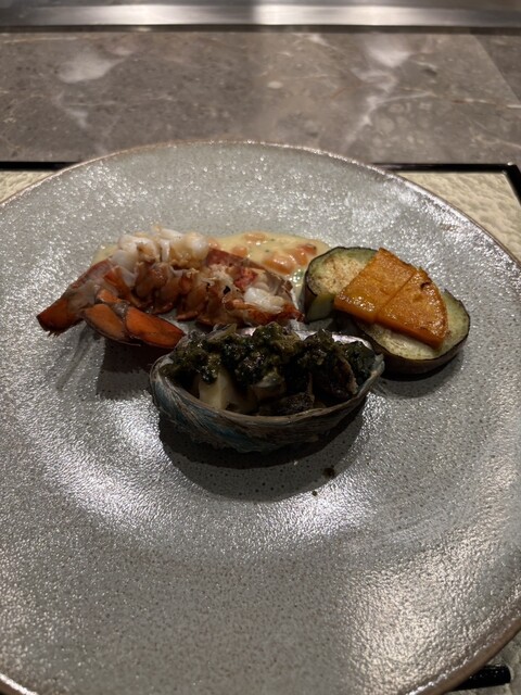 鉄板焼は目の前でファイヤー!もシェフがお声かけしてくださったので、バッチリ撮れました。