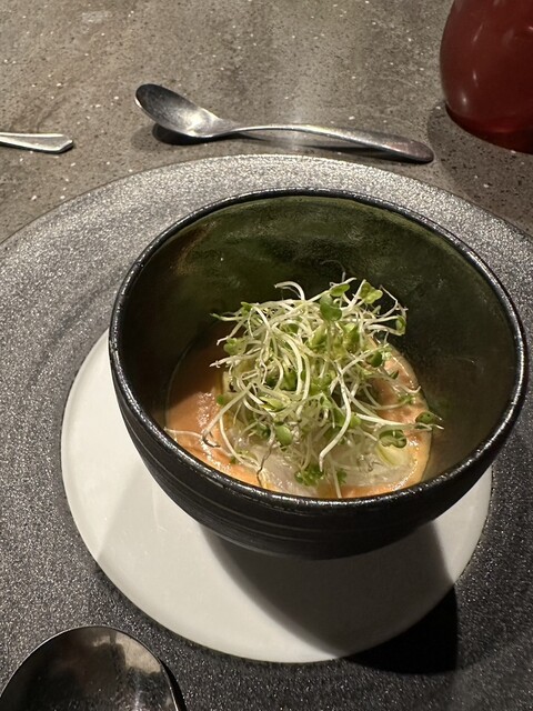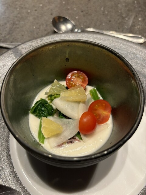 嫁があんまり飲めないのでワインのペアリングでなくグラスで頼もうとしたらオーナーが少なめのペアリングにしましょうかと少なめを作ってくれた。