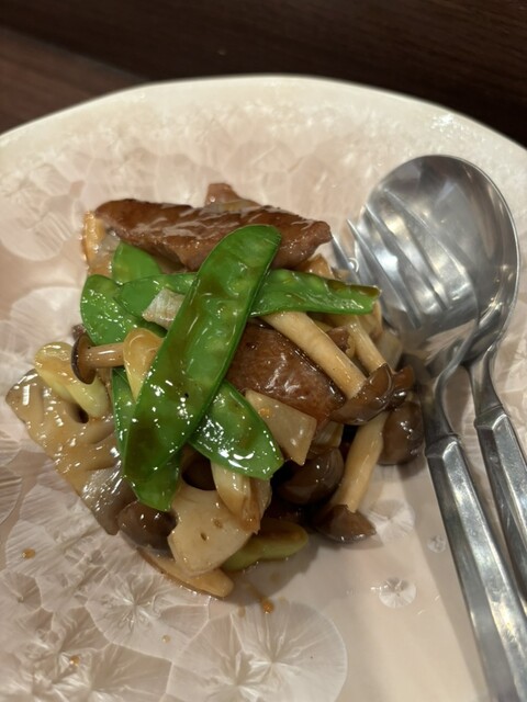 黒毛和牛ミスジと新レンコンオイスターソース炒め