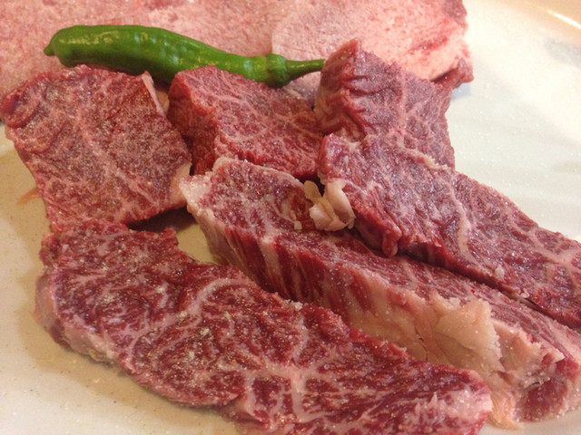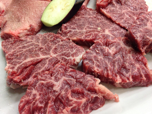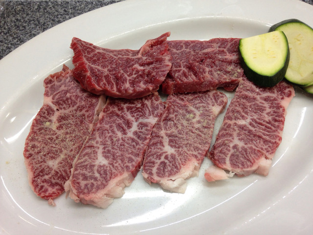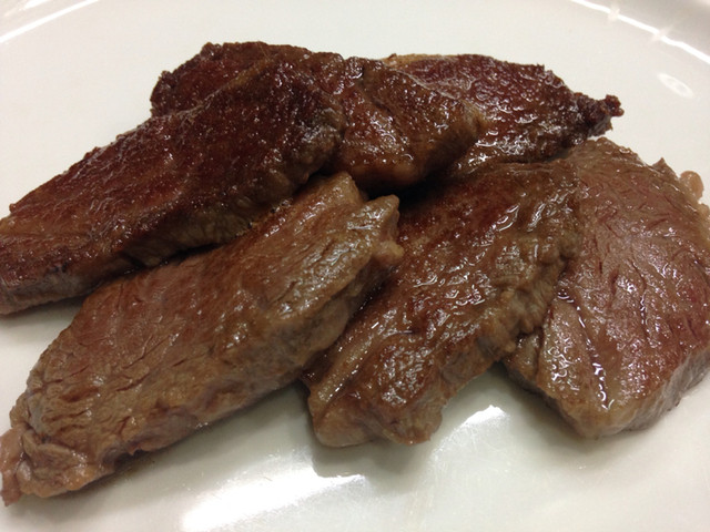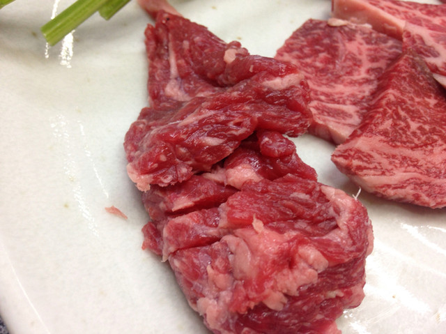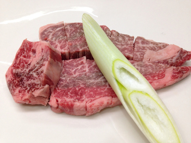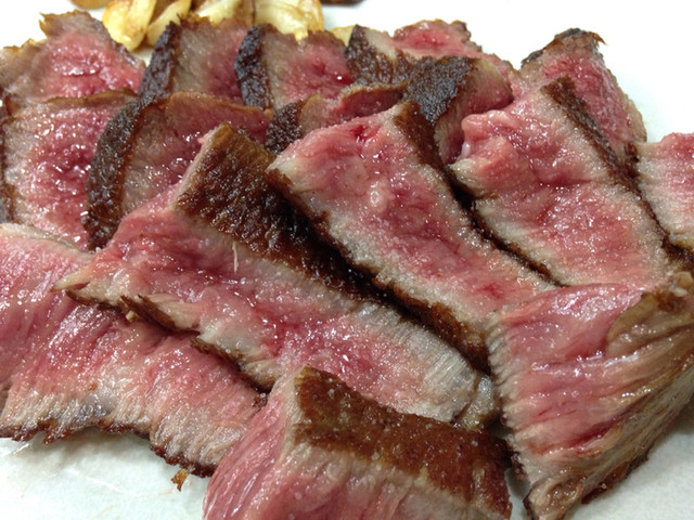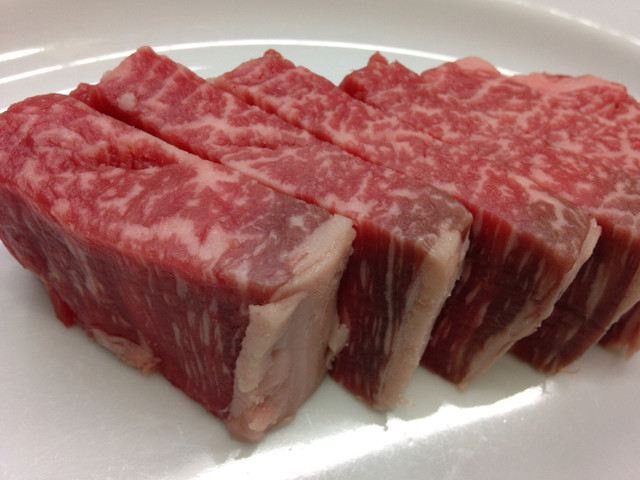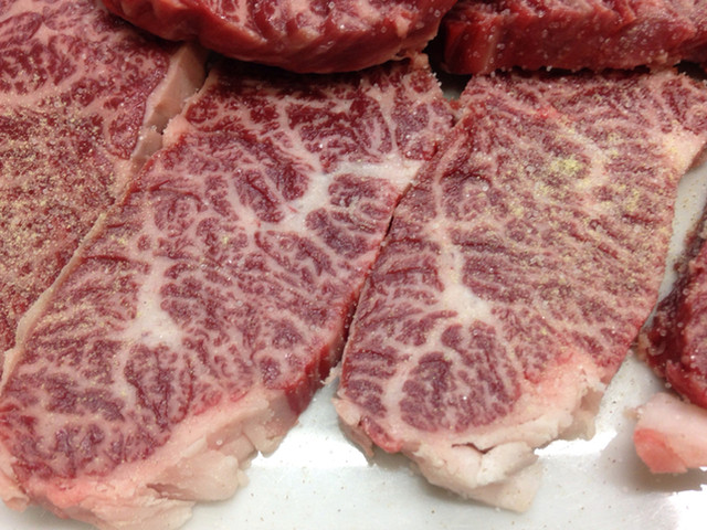 同じ部位の繊維に沿わせてカットしたハラミ。バター香がしっかり残ります