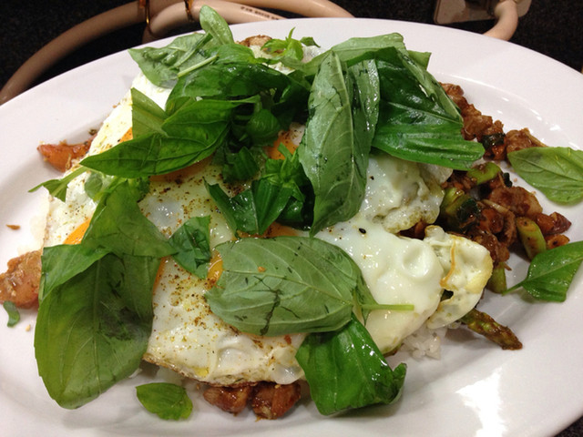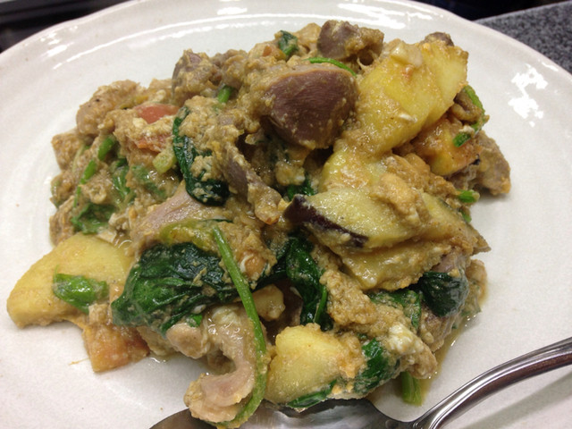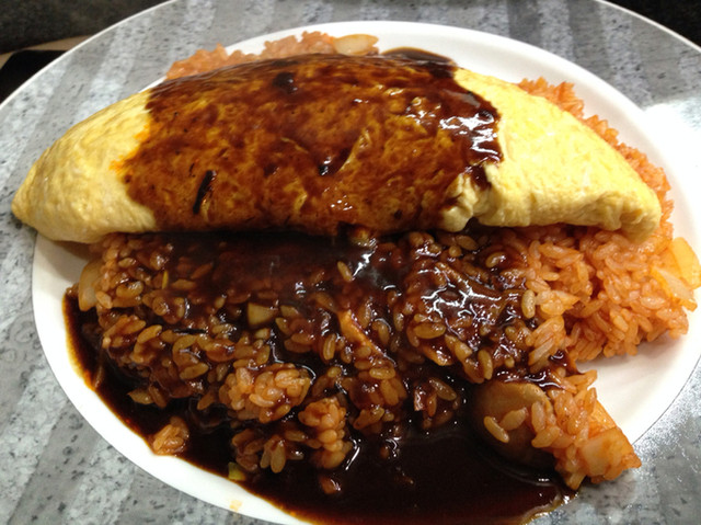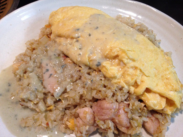 グリーンカレーチャーハン オムレツのせ ブルーチーズのソース