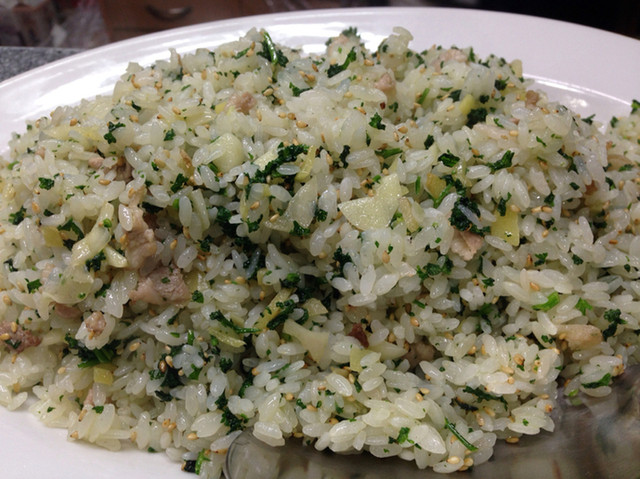 海老、鳴門金時、木の芽のチャーハン