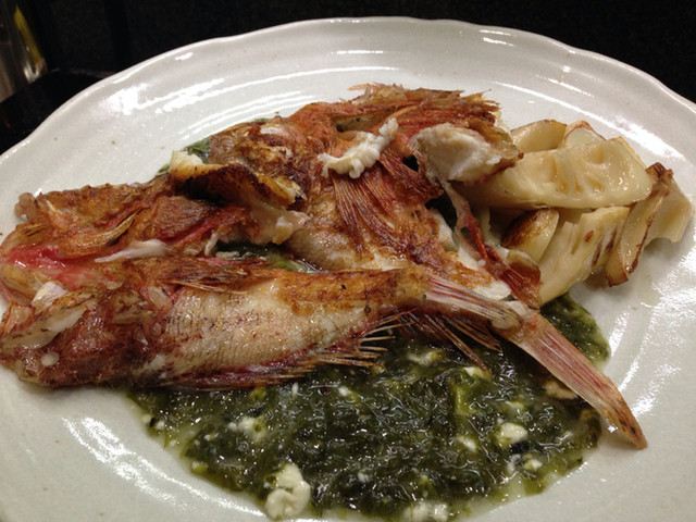 カサゴのポワレ アオサバターが神すぎた