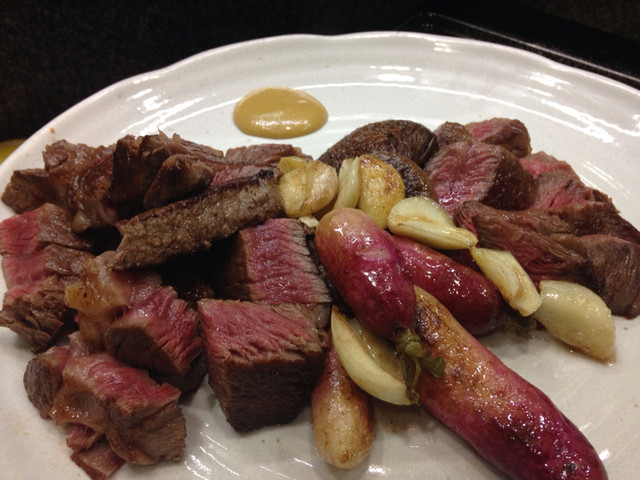 これぞ本物の赤身。巷で人気のドライエージングも悪くないけど、やっぱり仕上がっている黒毛和牛のしんたまなどの赤身部位には敵わない。旨味の濃さが全く違う。また個人的にはサシの少ない部位は、低温調理よりもステーキフリットでの調理の方が旨いと思う。素晴らしいステーキでした。