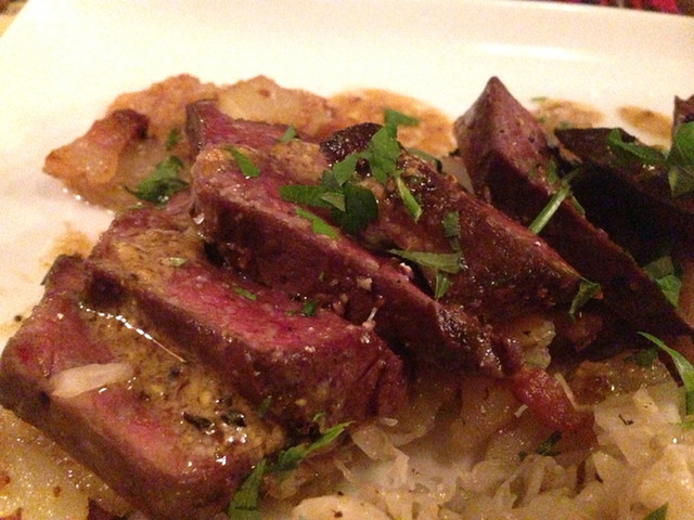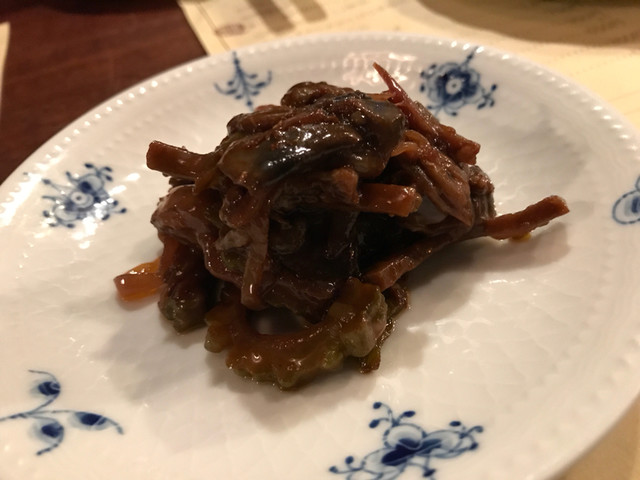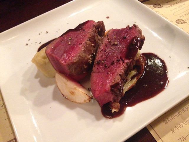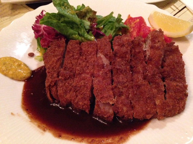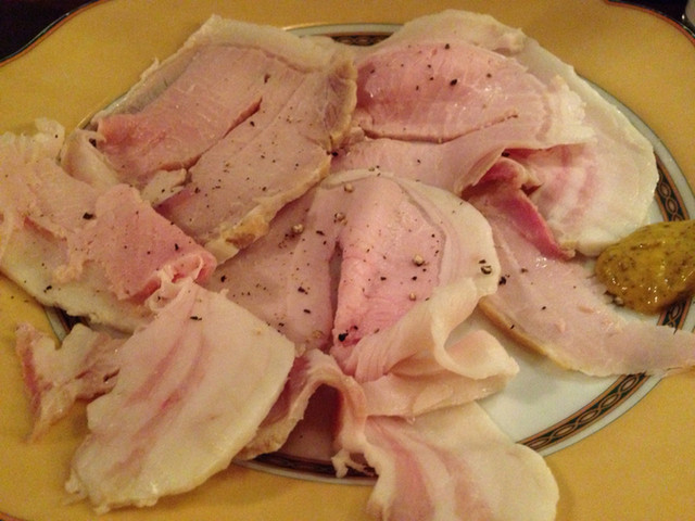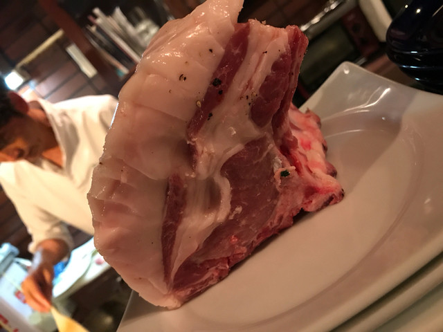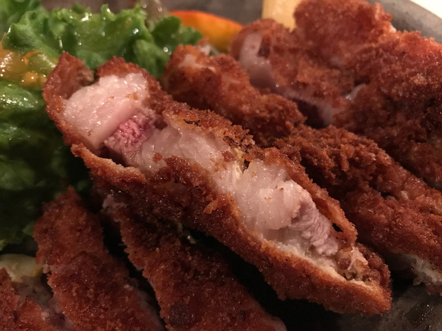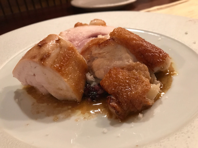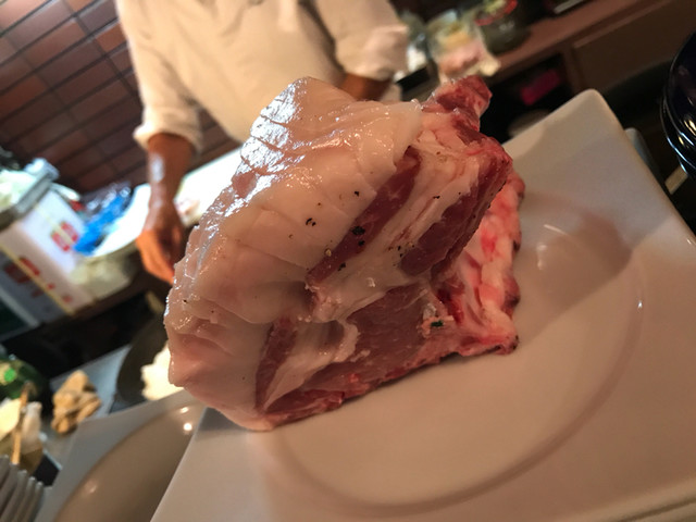 とても希少なハンガリーのマンガリッツァ。脂が分厚いですが、融点が低く常温で溶ける。脂は見た目と比較して相当柔らかで軽やか。肉自体は黒豚系には劣るが十分に旨味もある。貴重な経験でした。
