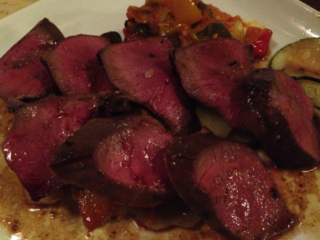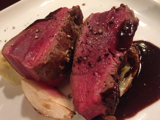 長めの齢の雄鹿、若い雄鹿と比較して肉にクセのない旨味がのってくる。くさみは全くなし。宮崎内の鹿では今までで1番味ののった鹿でした。火入れは写真の通り。
