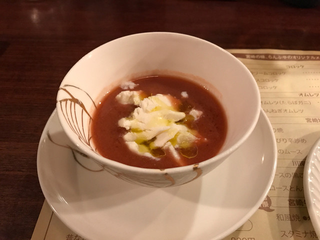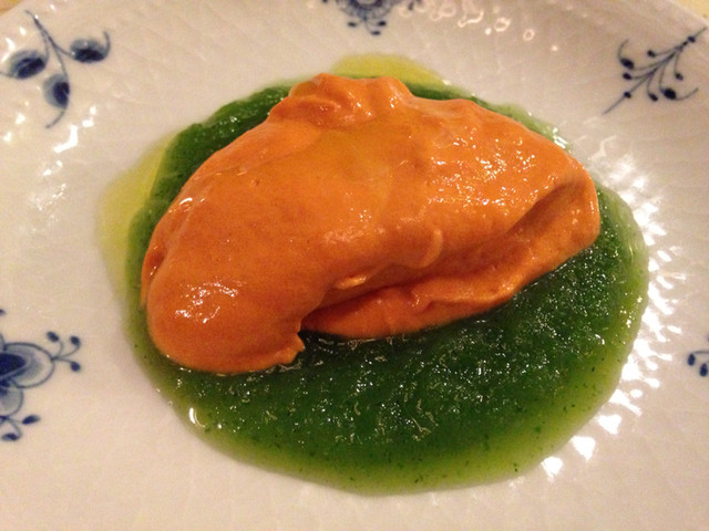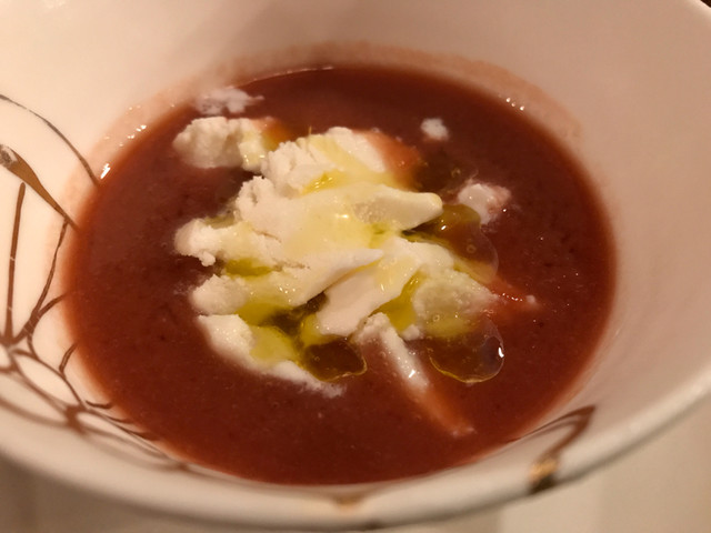赤ピーマンのムース 下は胡瓜のピューレ うまいわぁー!