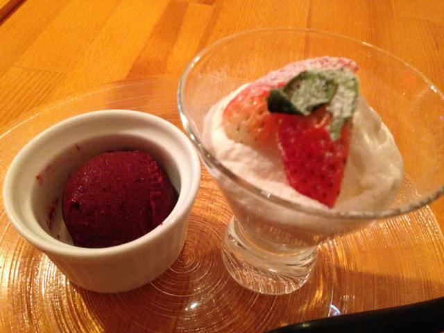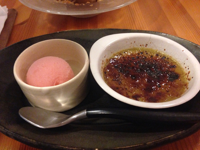 乳飲み仔牛、豚を思わせる旨味だけでなく牛の旨味も感じ、非常に美味。ルビーポート、マデラー酒を使ったポルチーニのソースとの相性もバッチリ。ピスタチオのクレームブリュレも完全に僕の好みにどストライク。非常においしうございました!