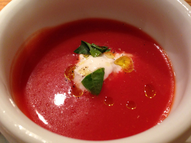 サラダは色んな味わいが楽しめていいですね。フルーツトマトの冷製スープはやっぱりいいなー。フルーツトマトの甘味が素晴らしい。ピスタチオのクリームブリュレもあいかわらずうまかったー!