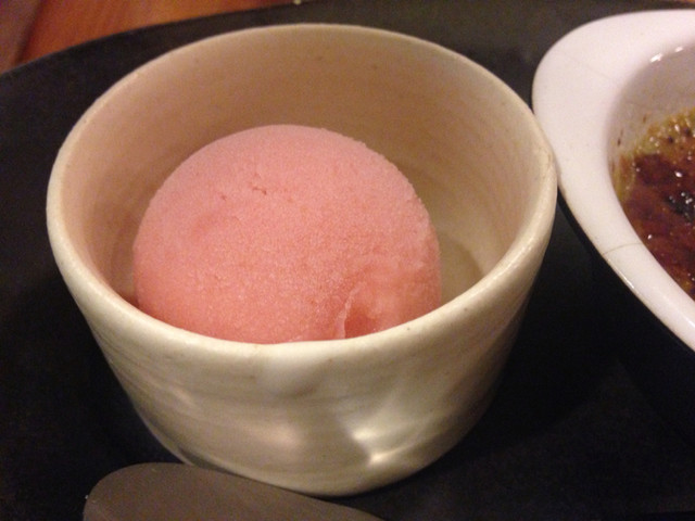 ピスタチオのブリュレ、フランボワーズのシャーベット