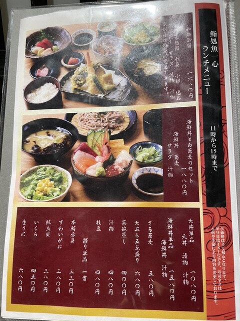 蕎麦、天ぷら、茶碗蒸し、寿司7貫のランチセットがお得です。