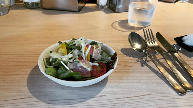 今回はプライベートのランチですが、パスタも週で変わるので楽しいです。最近はもっぱらパスタですが、この日もパスタランチです。生ハムと春キャベツのレモンソース仕立てのパスタだったかと思います。ハムの効果なのかそこそこお腹も満足です。大食漢の方にはものたりませんが、美味しく程よく楽しみたいという人にはちょうど良いです。