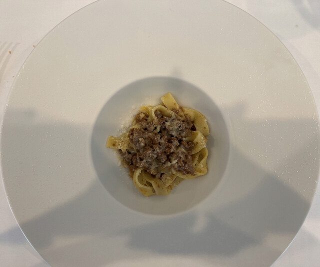 ふた皿目のパスタはラグーソースのタリアテッレ