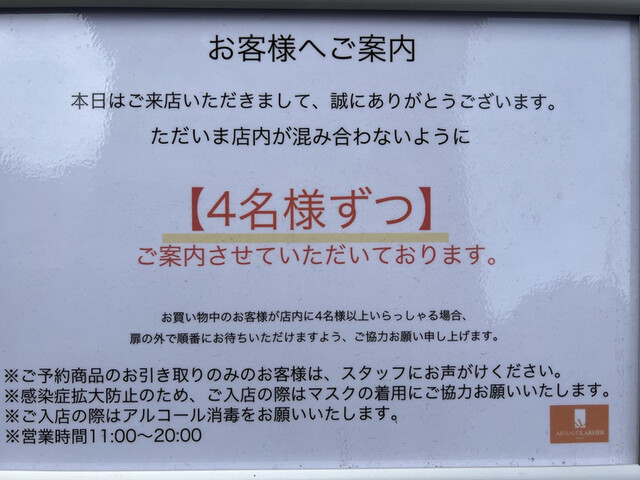 週末の12時 コロナ対策で店内は4名ずつの入店