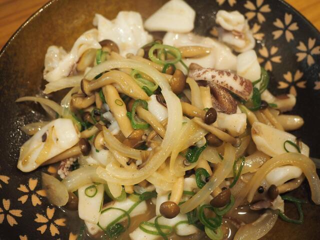 同率一番はイカ下足バター炒めです。野菜たっぷりでもう、大満足