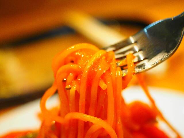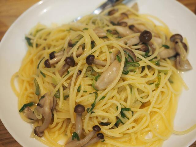 にしました。パスタは乾麺ですが、良い塩梅で茹でられており、しかも、味付けも