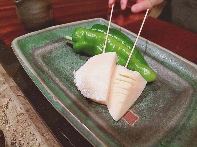 これも皮目をパリッと焼いてくれました。。お料理は自分で焼いたり、スタッフさんが焼いてくれたりとそれぞれです。。
