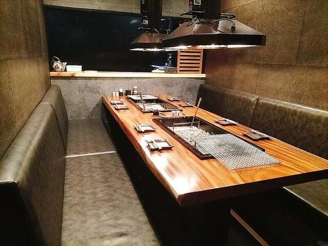 中は8人ほど入れる大きめの個室になってます。。厨房だけが奥で繋がっていてそれぞれのテーブルと対面できるようになってます。。