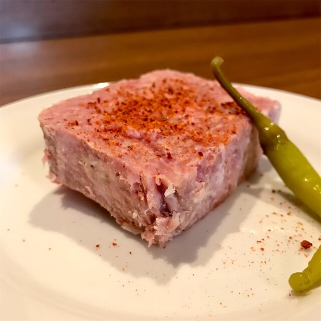 ほんのりピンク色の豚は甘い脂をたたえる。