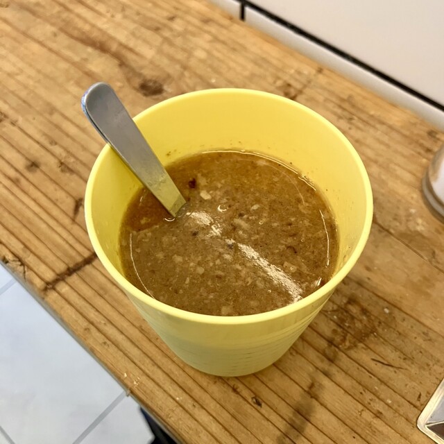 煮込んだ豚の多様な部位が山。自家製サルサ