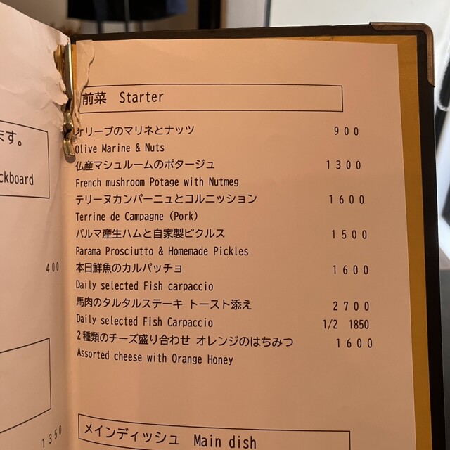 【前菜:本日鮮魚のカルパッチョ】税込900円