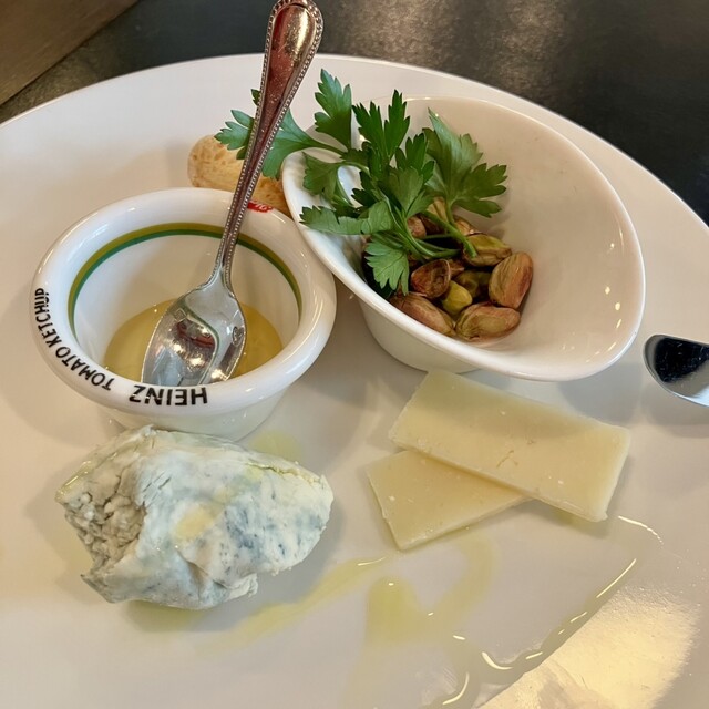 ブルーチーズに蜂蜜が合う。ピスタチオも◎