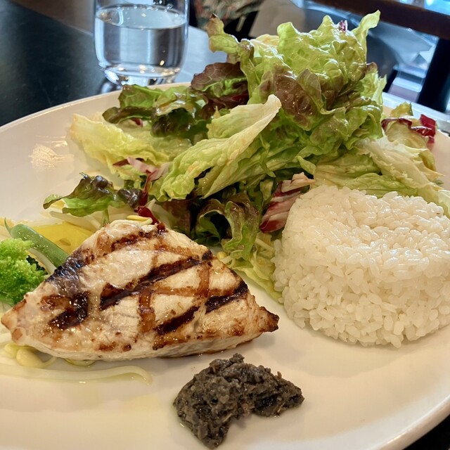 お皿が巨大ゆえに魚が小さく感じる(笑)