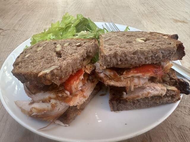 ぱっと見、コンパクトですが厚切りローストポークが3枚ほど重なり食べごたえがあります。バルサミコソースの味付け、具にはドライトマトが入っていて、ペロリと食べられます。