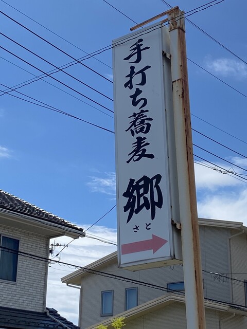 国道354号沿いの住宅街にポツンと佇む本格手打蕎麦の看板