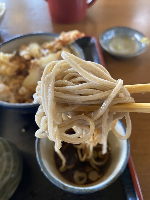しばらくしてミニ天丼と盛り蕎麦提供です