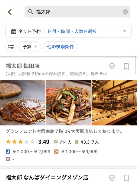 福太郎 梅田店大阪、梅田、大阪梅田(阪急)/お好み焼き、鉄板焼き、焼きそば