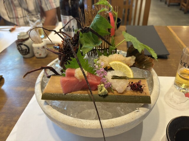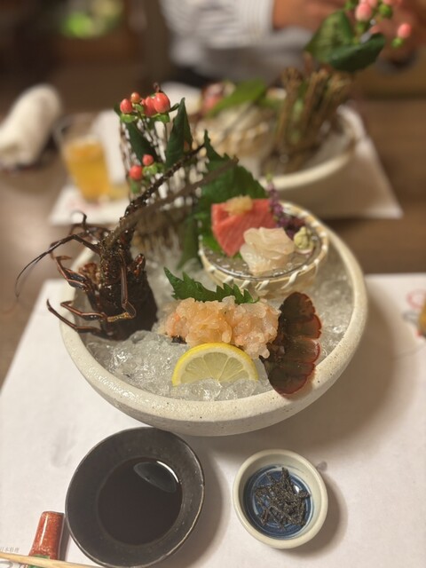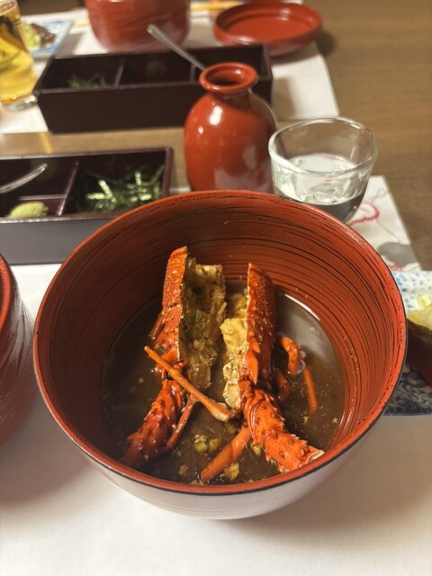 刺し盛りの伊勢海老プリプリでは、殻は味噌汁になって出てきました。
