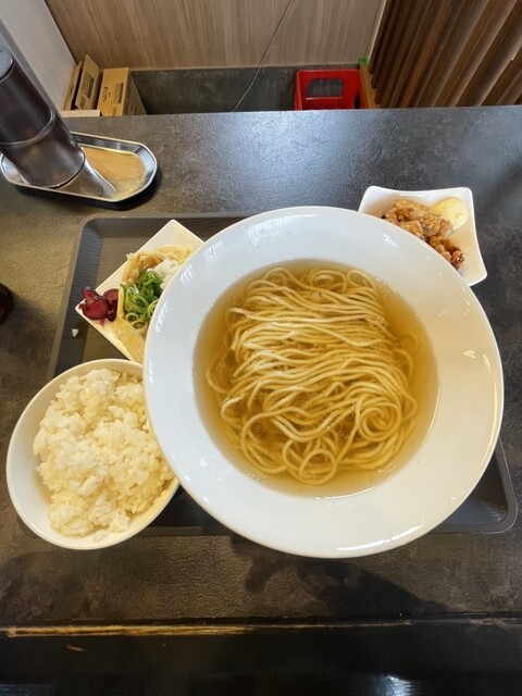 淡麗煮干しらぁ麺890円+唐揚げ2個と白飯セット250円