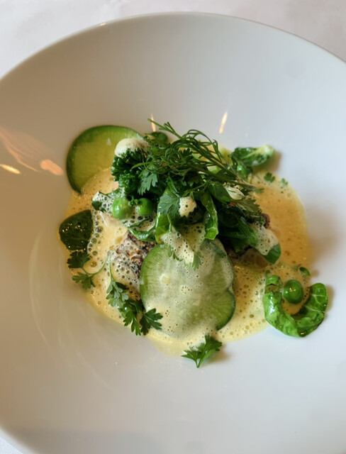 訪れるたびにこんなおいしい食べ物があるんだという発見をさせてくれるこちらですが、今回はメインで供された神経締めをしたという瀬戸内の鯛を使った料理が一押しでした。魚の締め方についてはこれまた美味しんぼで読んだ程度しか知識がないため気になる方は調べてみてください。おそらく締め方だけではなく料理方法もあるのは間違いないですが鯛の味をこんなに感じたのは初めての経験でした。魚を味わうには刺身が1番いいと思っていた自分には目から鱗の体験です。