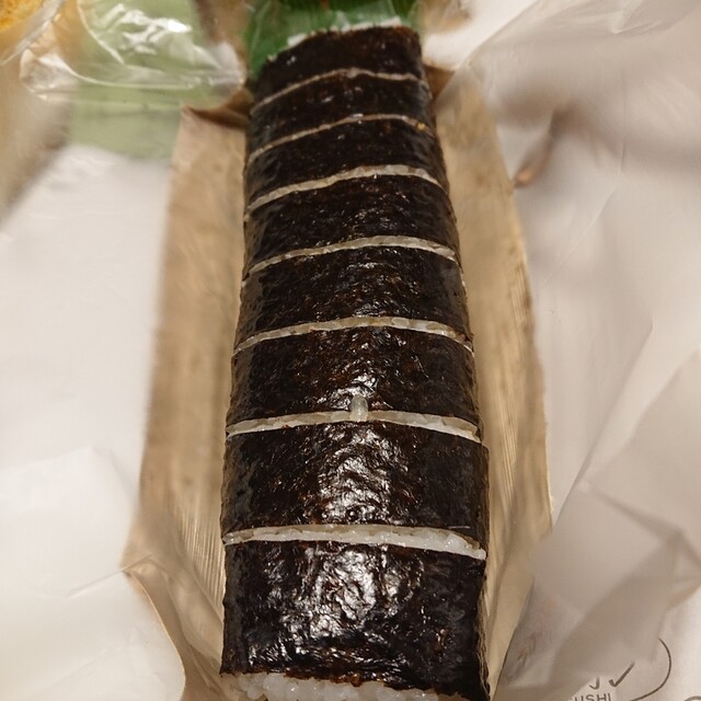 お昼休みに開封。味付けは全般にデパ地下で買うものよりは、東京風というか下町風が前面に出ている感じがします。いなりはよりジューシーで濃いめの味付け。酢飯にちょっとツユが浸みています。かんぴょう巻は中の甘辛く煮たかんぴょうの比率が高い。中心にたっぷり入ったかんぴょうをご飯が一並べ包んでいるイメージです。太巻きはあまり差がないかもしれません。好みの問題かもしれませんが、デパ地下で買うちょっと上品な感じのものよりもこっちの方が好きですね。