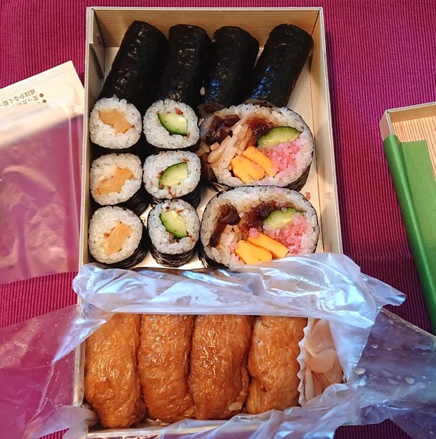 なお、テイクアウトで持ち帰って家で食べたいなりと太巻きは伊勢丹の地下の上品系のものとは全く別物。いなりはしっかりした味付けでジューシー。太巻きはかんぴょうの含有率がすごい。両方とも下町系の味付けでした。