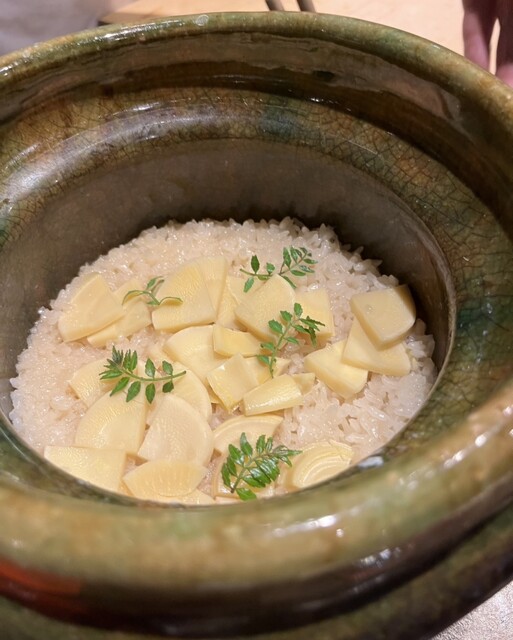 最初の茶碗蒸しの新しい味の美味しさに感度し最中サンドに心奪われ梅煮麺に心掴まれ、炭火焼きの寒鰆も信玄鶏も焼き具合最高!こんなに柔らかい鴨は初めて出会ったし、艶々ピカピカの筍ご飯も絶品!ビジュアルにも拘った品々。